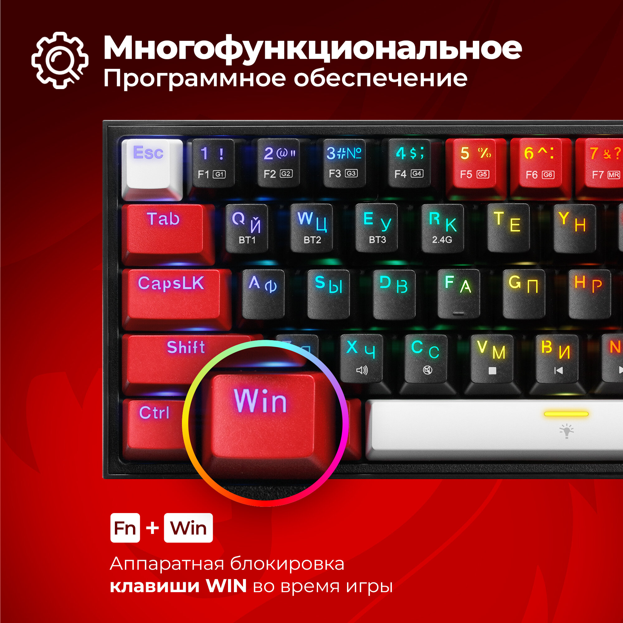 Клавиатура беспроводная Redragon Castor Pro черный/красный . интересное: