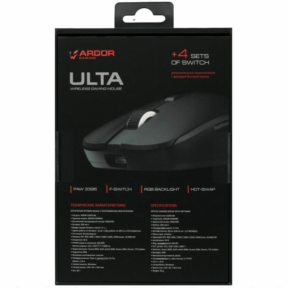 Мышь беспроводная/проводная ARDOR GAMING Ulta [ARDW-U3395-BK] черный интересное: