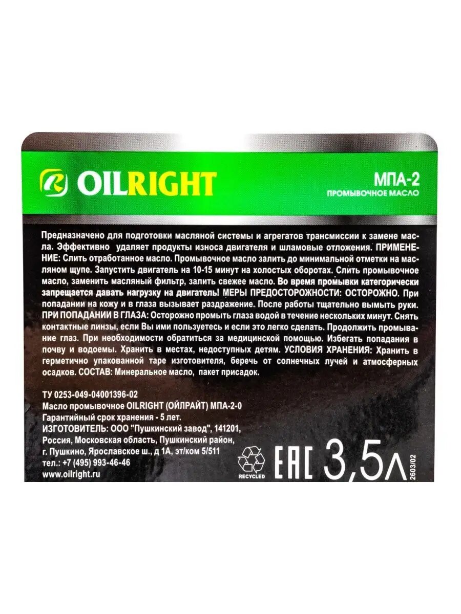 Купить Масло Моторное Промывочное Oilright Мпа-2-0 (3,5 Л) OILRIGHT арт. 2603