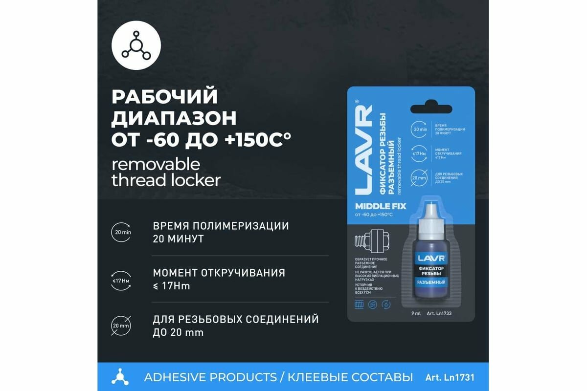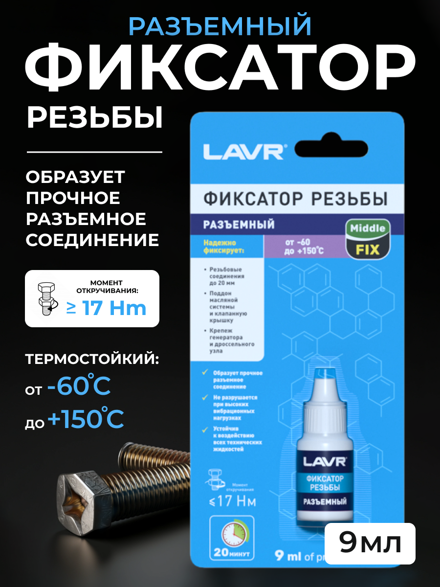 Фиксатор резьбы «Разъёмный» MiddleFIX LAVR Removable thread locker 9 мл. интересное: