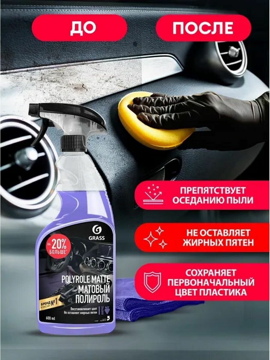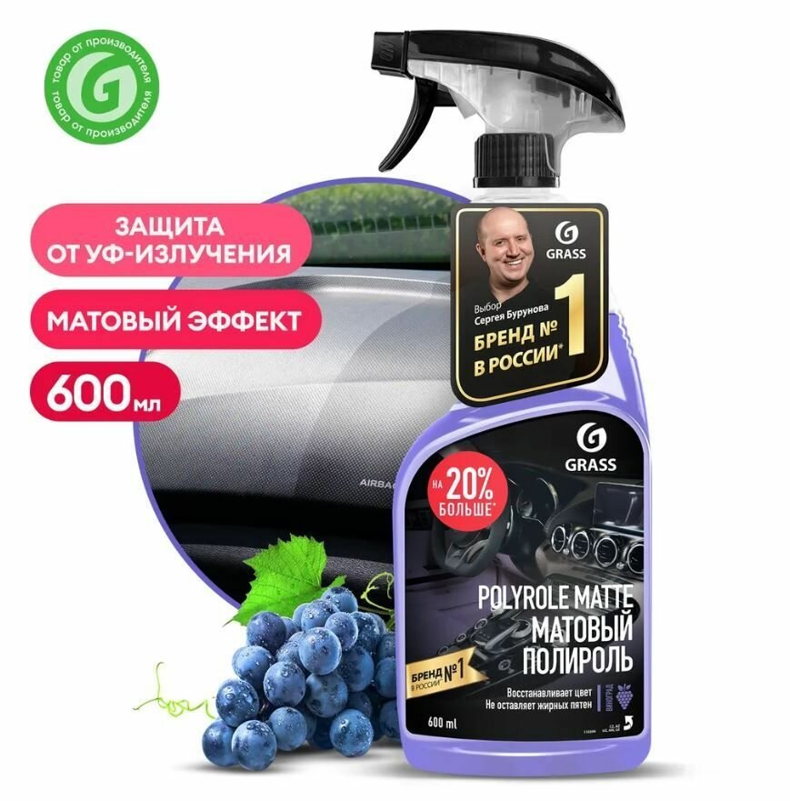 GRASS/ Полироль для пластика автомобиля Polyrole Matte Bubble // Очиститель пластика матовый, бабл гам, 600 мл.