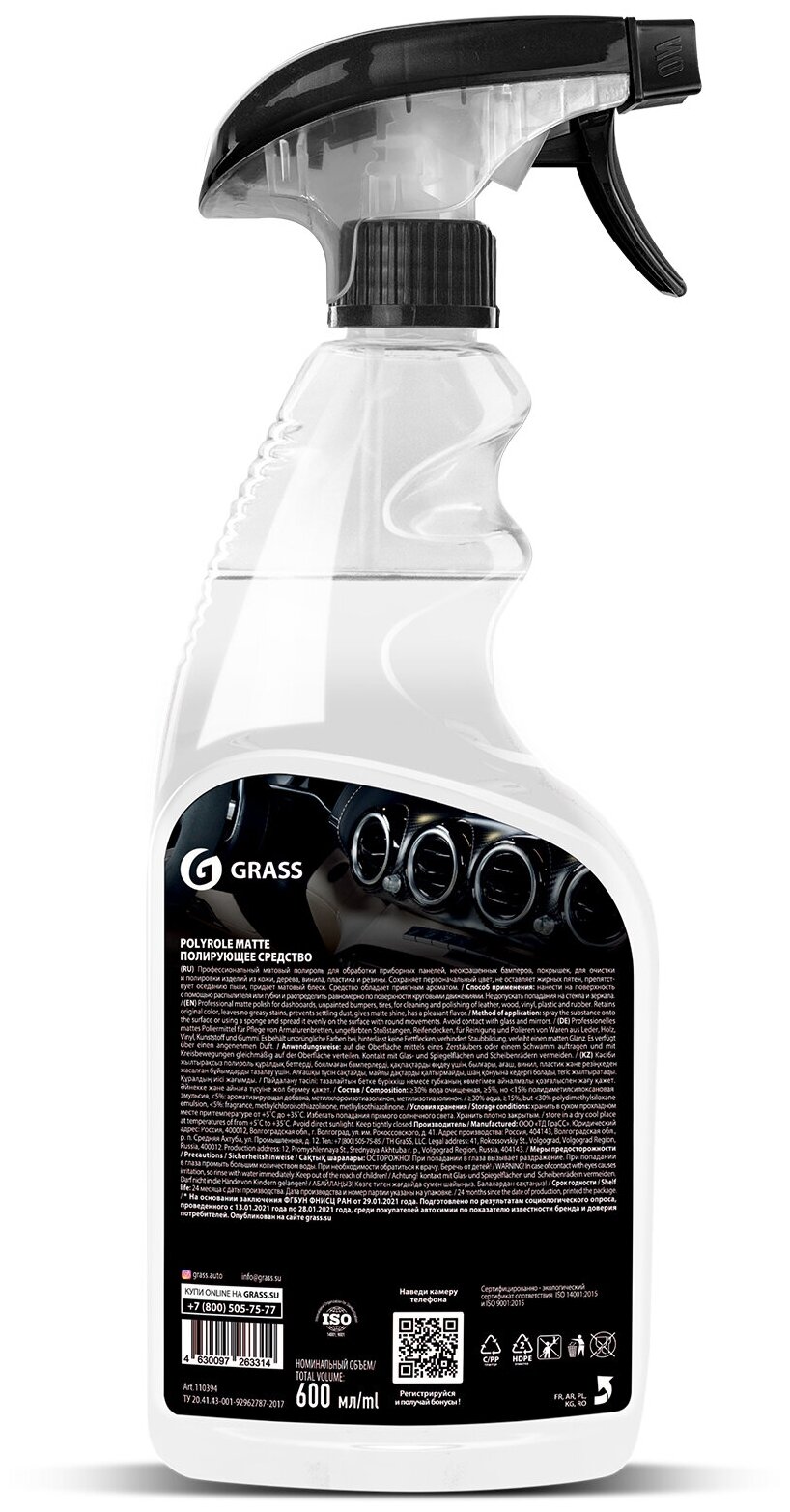 Grass Полироль-очиститель пластика Polyrol Matte матовый триггер 600мл Яблоко,