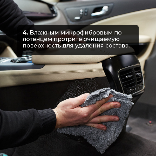 | Способ применения | 1. Обеспыльте загрязненную поверхность. 2. Нанесите состав на щетку. 3. Распределите состав по поверхности и поработайте круговыми движениями. 4. Влажным микрофибровым полотенцем протрите очищаемую поверхность для удаления состава. |