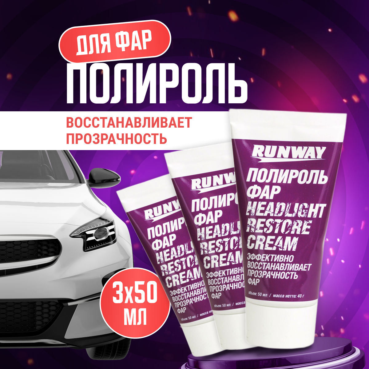 Полироль фар 50мл RUNWAY