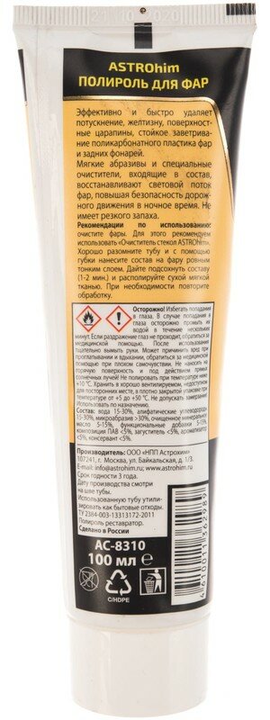Полироль для фар astrohim туба интересное: