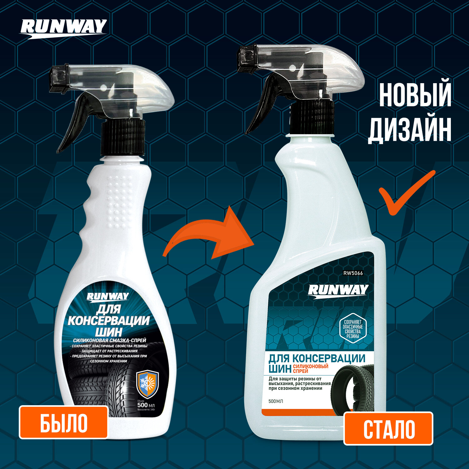 RUNWAY RW5066 Силиконовая смазка-спрей - Для консервации шин (500 мл).