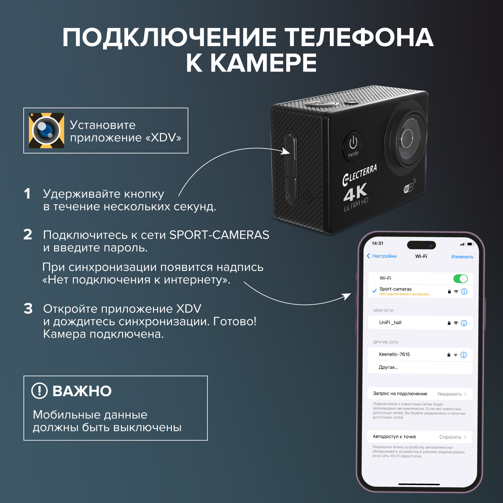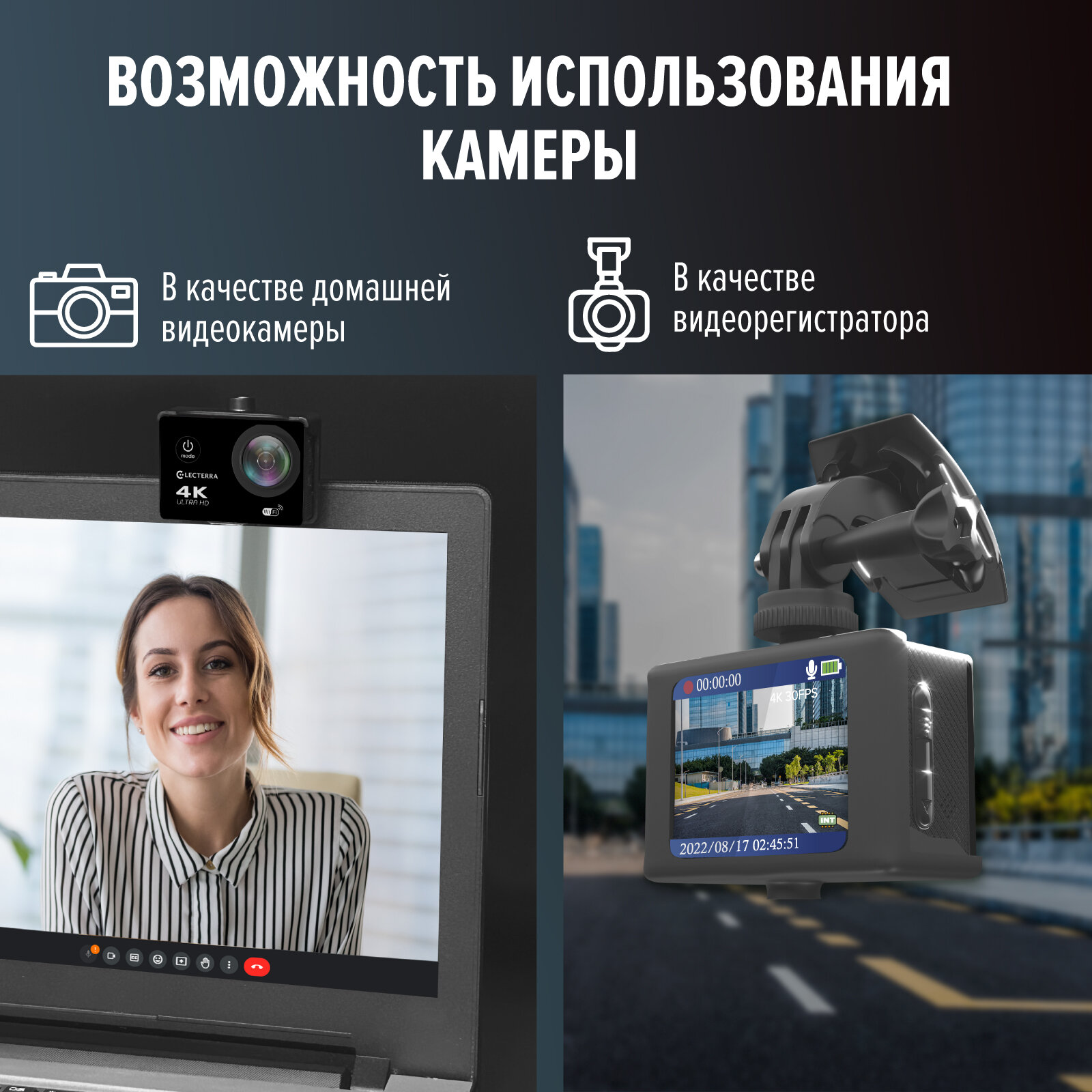 Экшен камера Electerra 4К с водонепроницаемым кейсом, креплениями и пультом ДУ интересное: