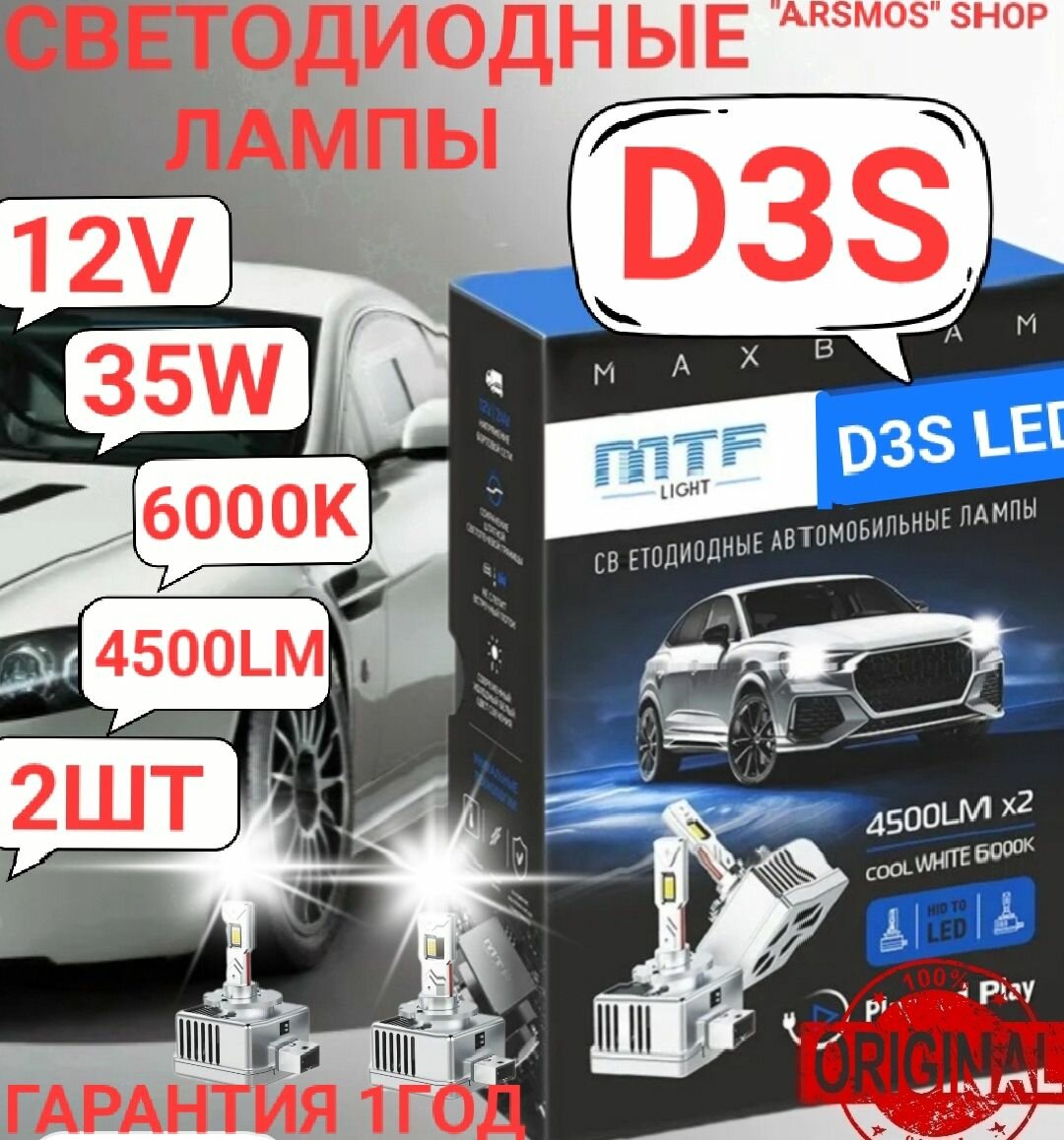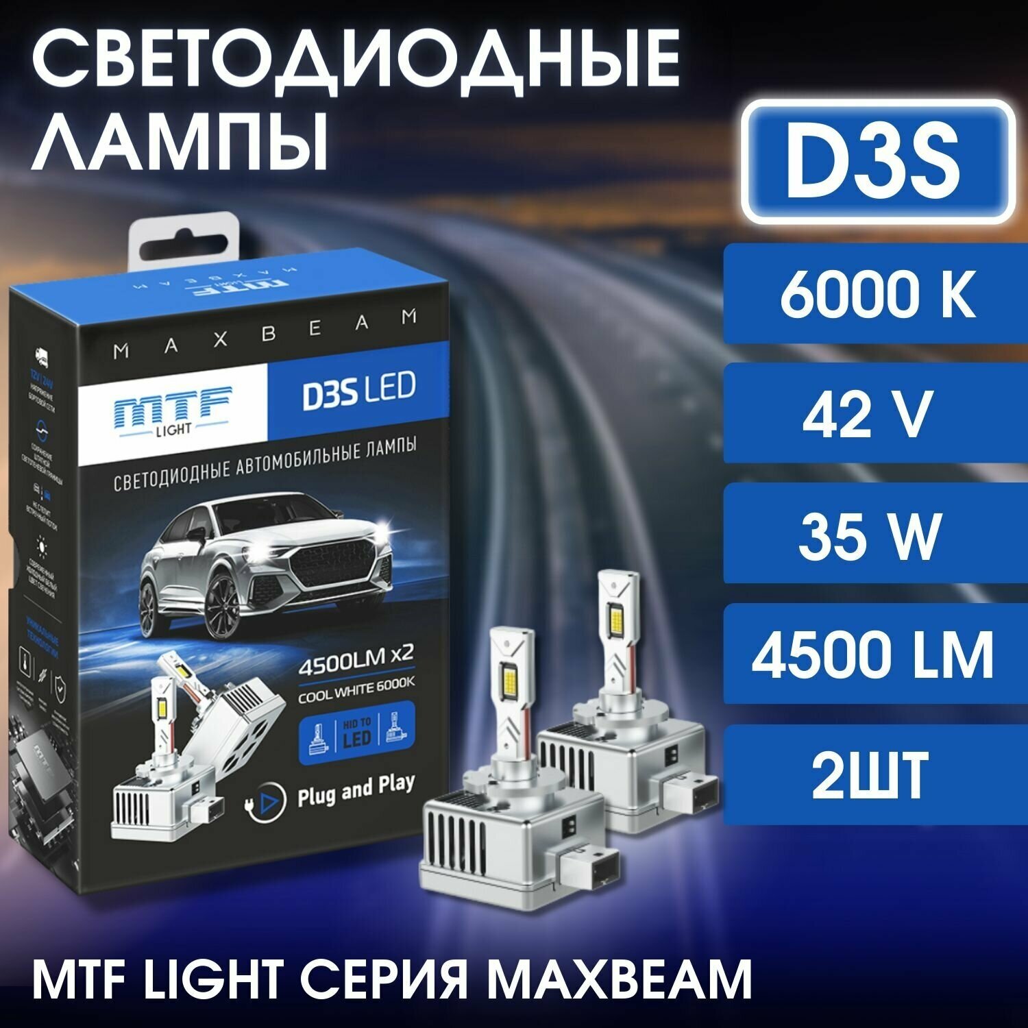 Купить Светодиодные лампы MTF Light, серия MaxBeam, D3S, 42V, 35W, 4500lm, 6000K, кулер, комплект.