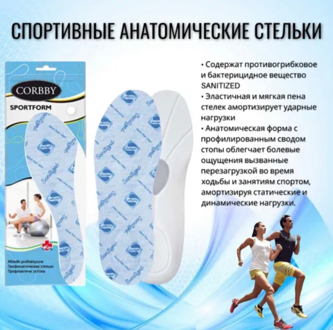Стельки Corbby SPORTFORM, ортопедические, размер 35-36. Стельки для спортивной, туристической и повседневной обуви. Пропитка SANITIZED.