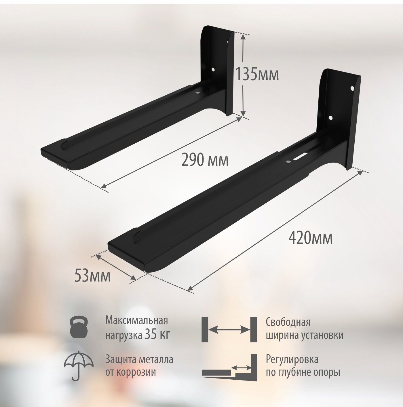 Кронштейн для микроволновой печи, цвет черный, стальной, максимальный вес до 35 кг