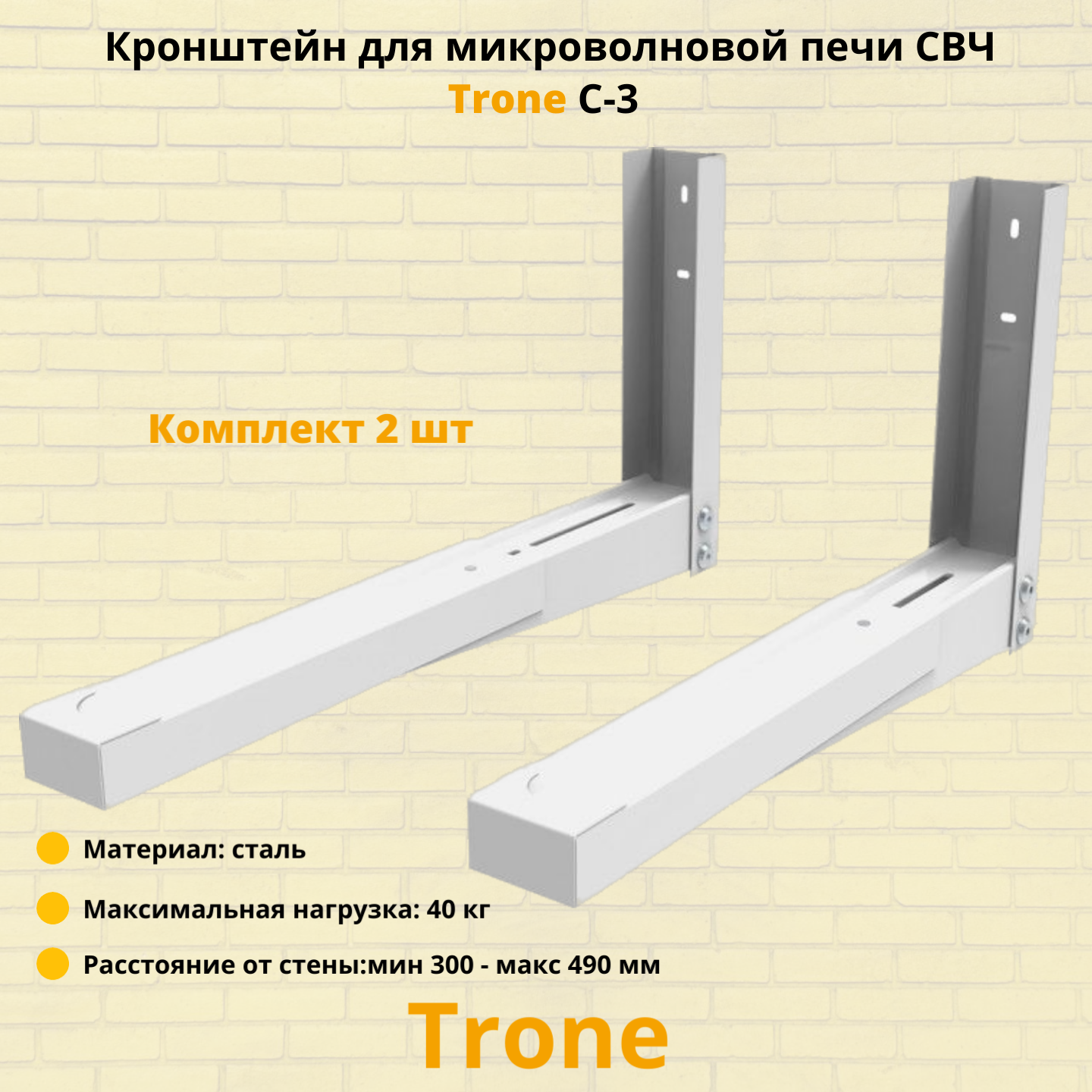 Кронштейн для СВЧ печи Trone С-3 настенный 490*300мм до 40кг - 2 шт. в упаковке - белый