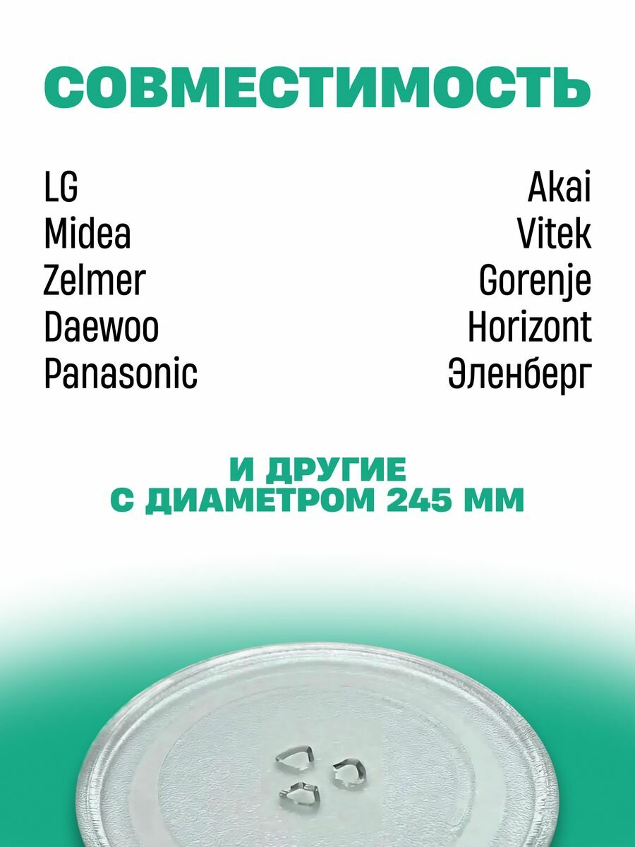 Универсальная Тарелка для СВЧ микроволновой печи стеклянная диаметр 245 мм без крепления, без куплера LG (ЛЖ) 3390W1G005D Тарелка поддон для микроволновки интересное: