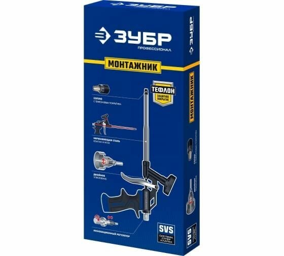 ЗУБР монтажник профессиональный пистолет для монтажной пены, с тефлоновым покрытием корпуса и сопла. ( 4-06875_z02 )
