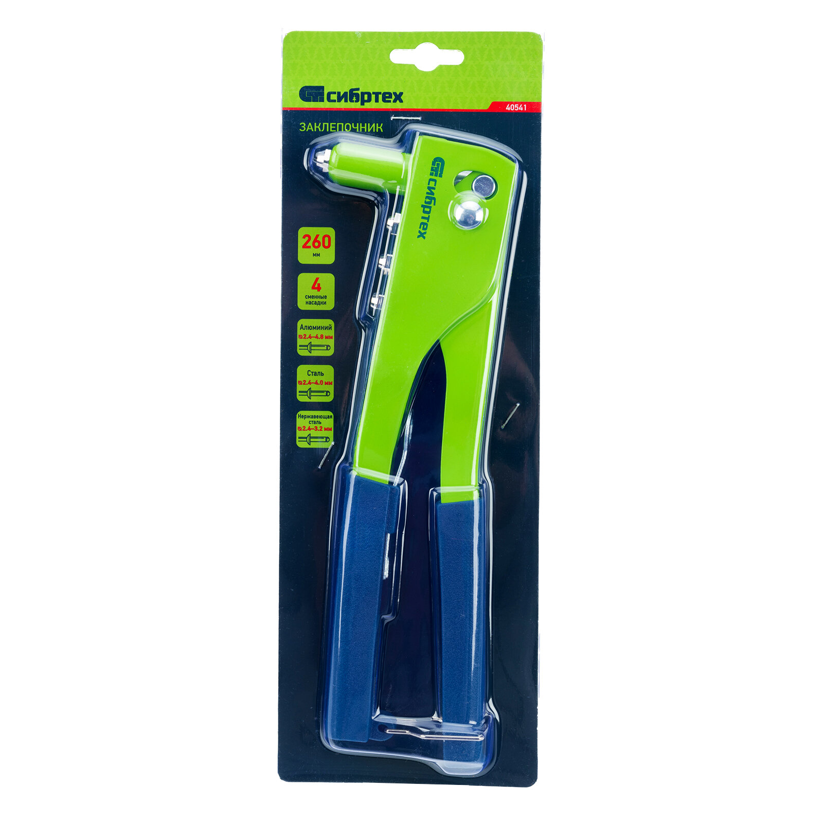 Купить Заклепочник Сибртех 260 ммзаклепки 2, 4-3, 2-4, 0-4, 8 мм 40541