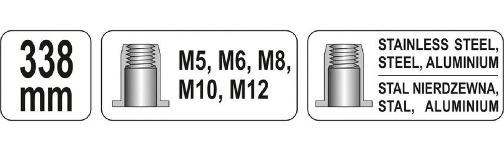 Заклепочник ручной резьбовой двуручный, 338 мм: M5, M6, M8, M10, M12 YATO YT-36119 | цена за 1 шт