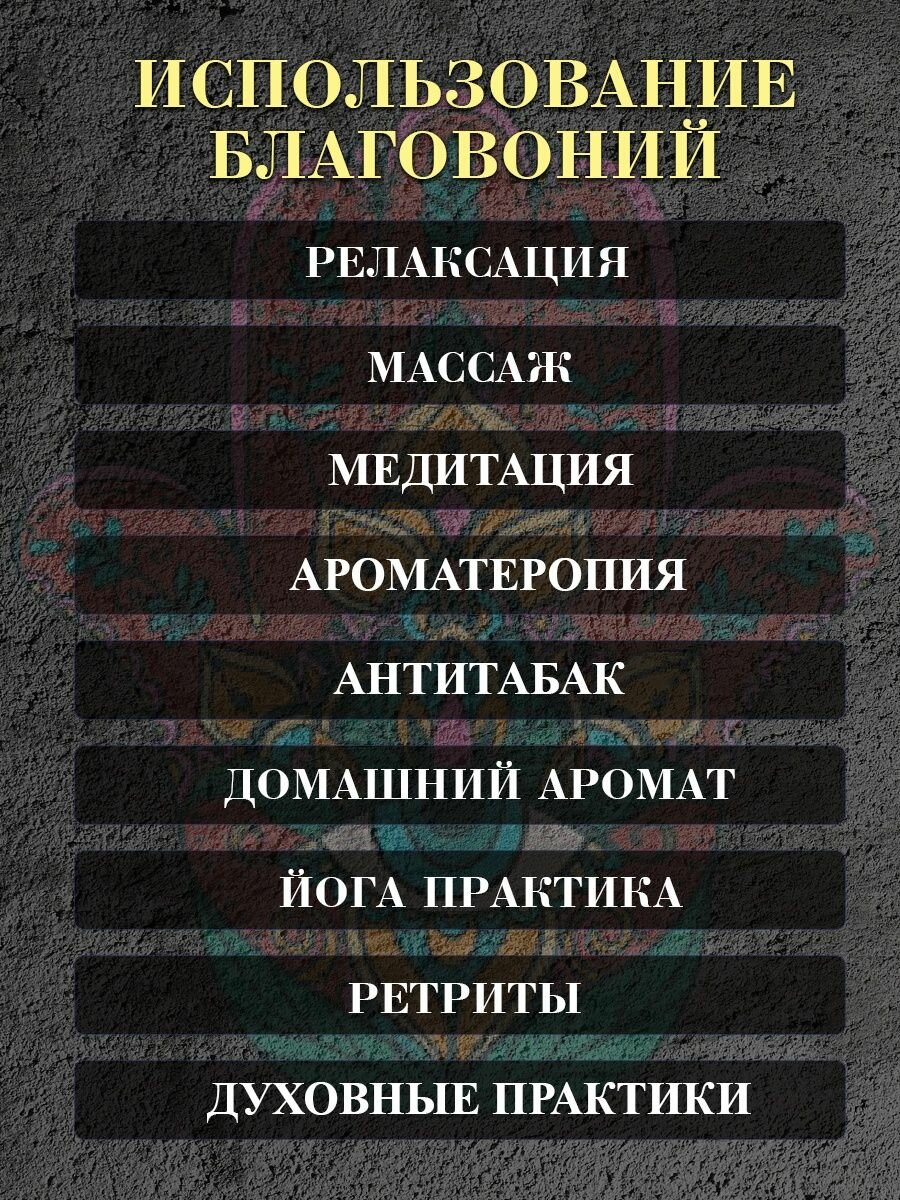 | Назначение | для безосновных благовоний, для конусов, для палочек |