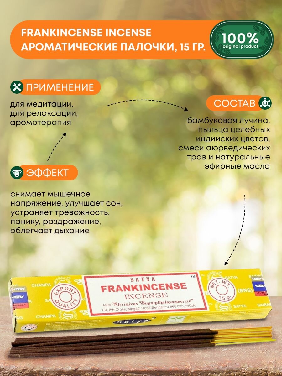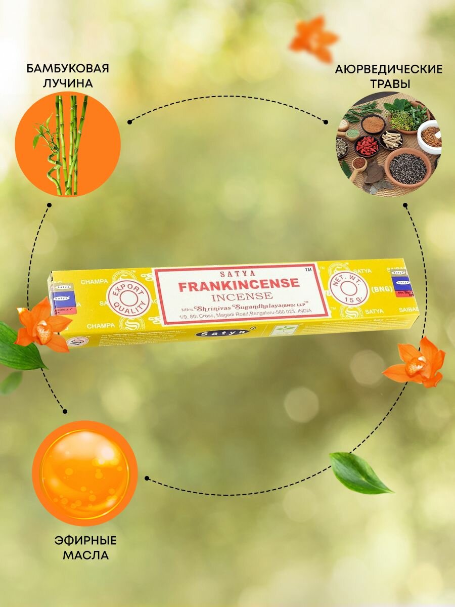 Купить Ароматические палочки благовония Satya Сатья Ладан FrankIncense, 15 гр