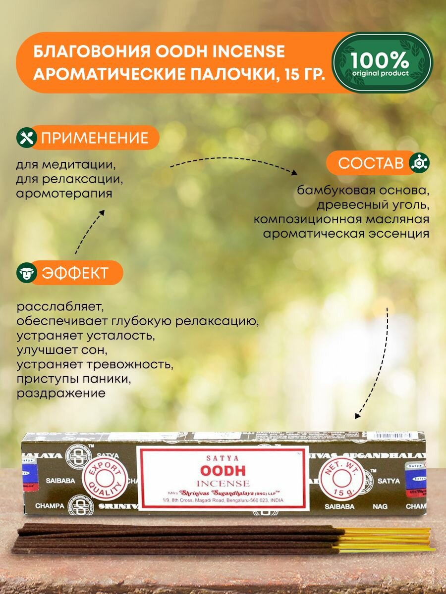 СохранитьSatya Аромат дерева Удх - 15 гр, ароматические благовония, палочки, Oodh - Сатия, Сатья интересное: