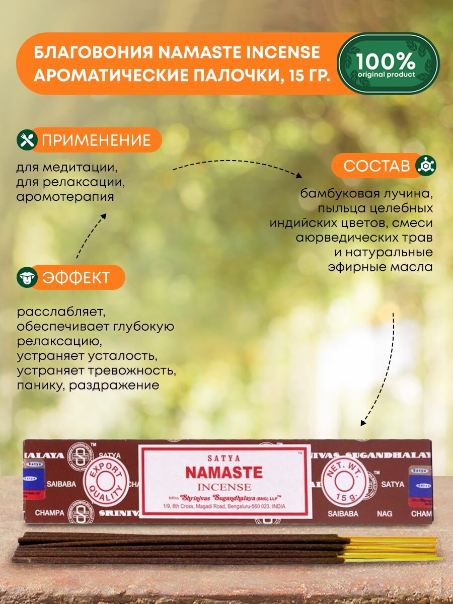 СохранитьSatya Намасте - Пожелание Удачи - 15 гр, ароматические благовония, палочки, Namaste - Сатия, Сатья интересное: