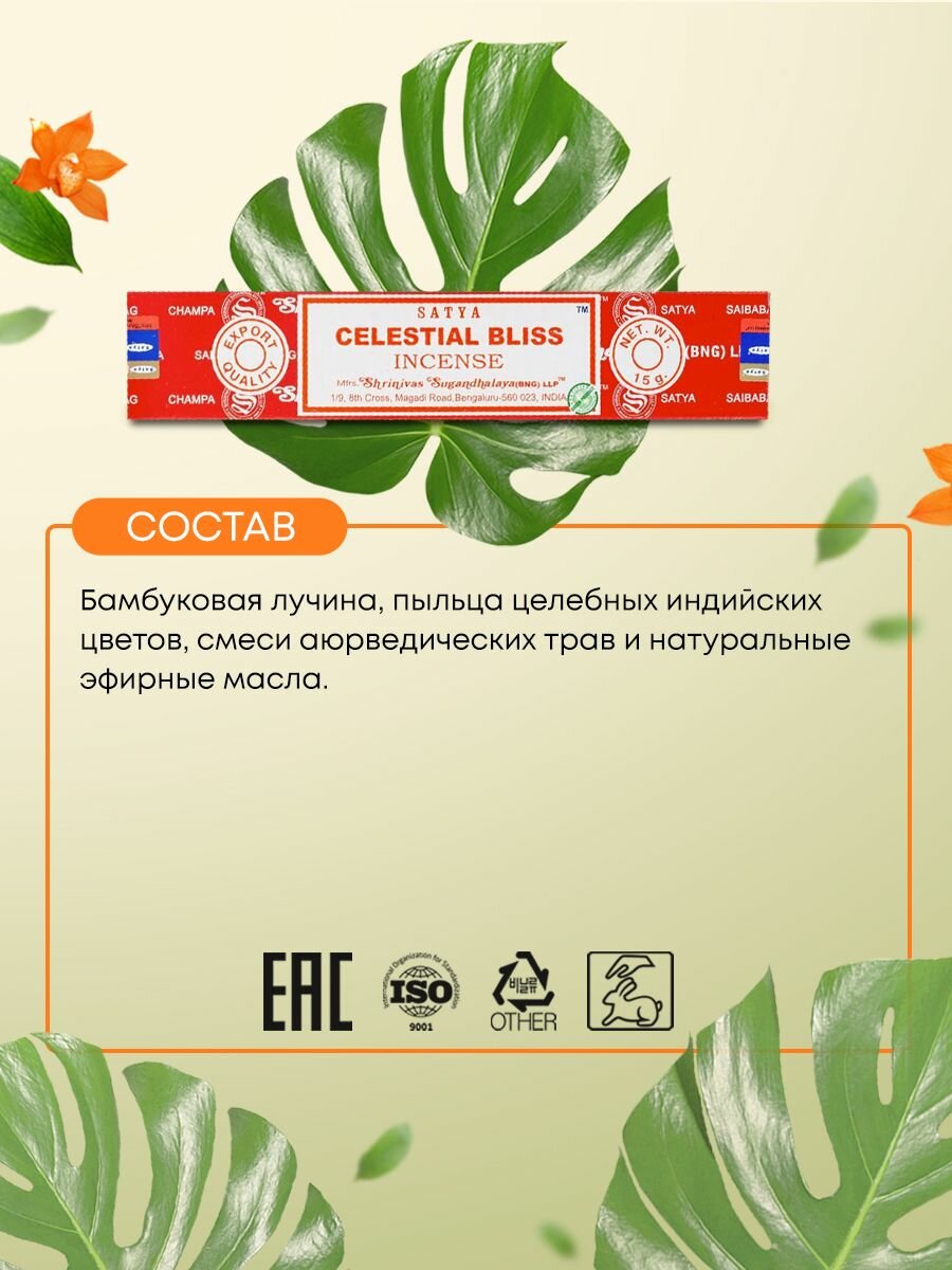Купить Satya Небесное Блаженство - 15 гр, ароматические благовония, палочки, Celestial Bliss - Сатия, Сатья