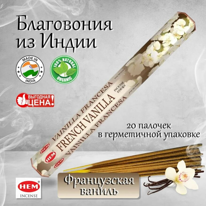 Ароматические палочки / Благовония HEM "Hexa French Vanilla / Французская ваниль" 20 шт интересное: