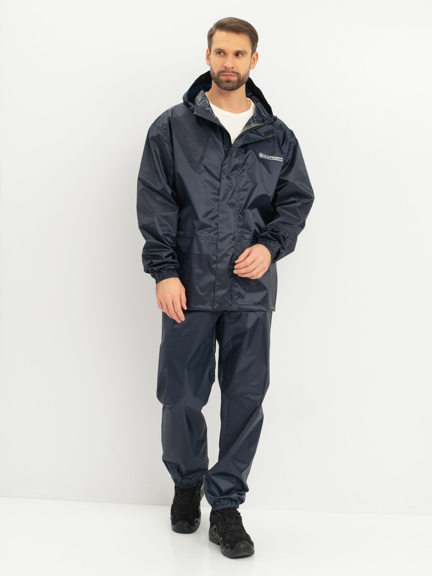 Костюм-дождевик мужской Huntsman ВВЗ Склон-2 летний ветровлагозащитный туристический, для рыбалки и охоты темно-синий, таффета рипстоп (р.52-54/182)