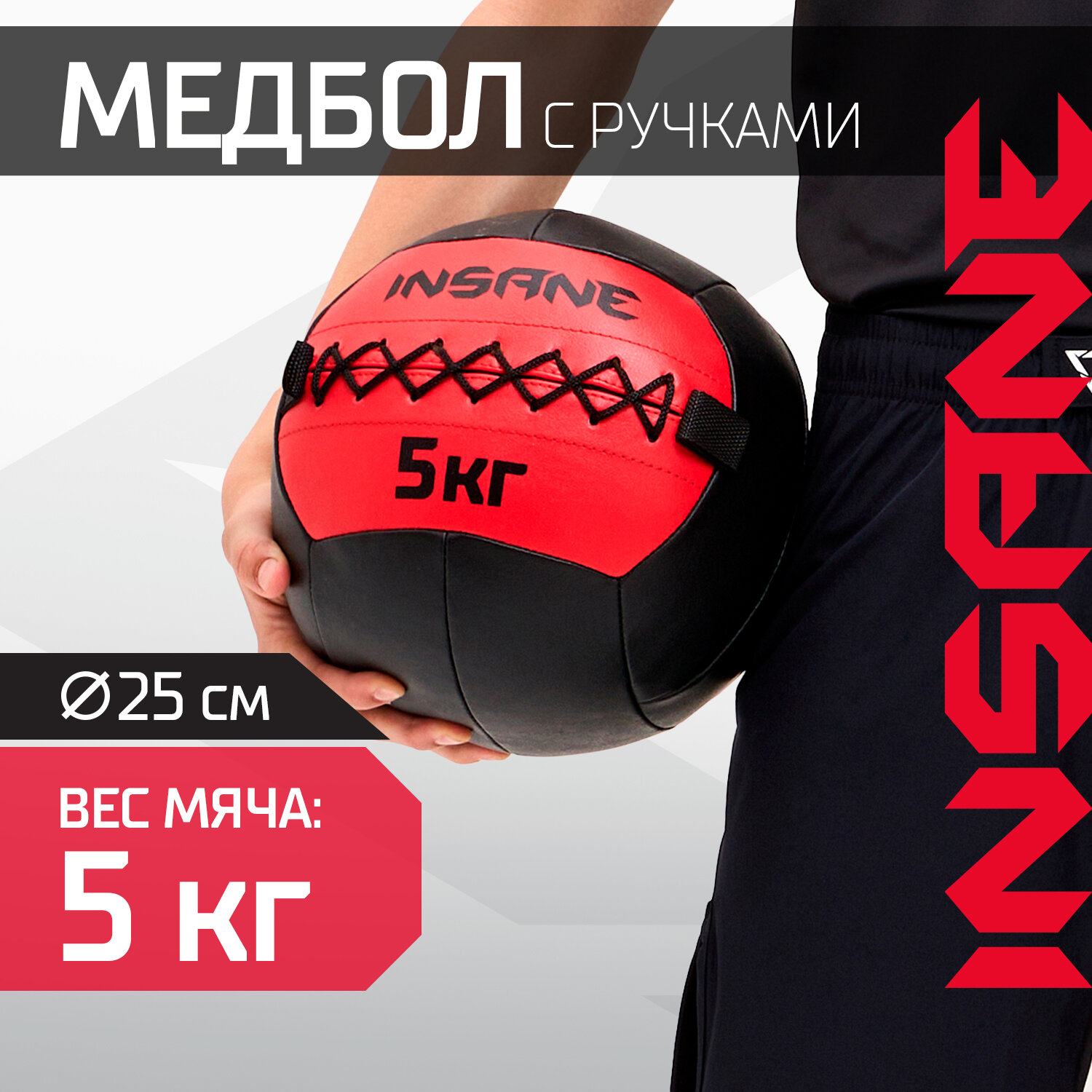 Медбол спортивный для фитнеса Insane IN24-WB100, вес 5 кг, цвет красный