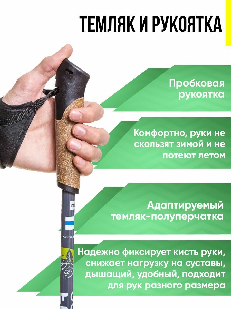 Скандинавские палки Finpole ECO, для ходьбы, 20% carbon, 120см, черные/зеленые