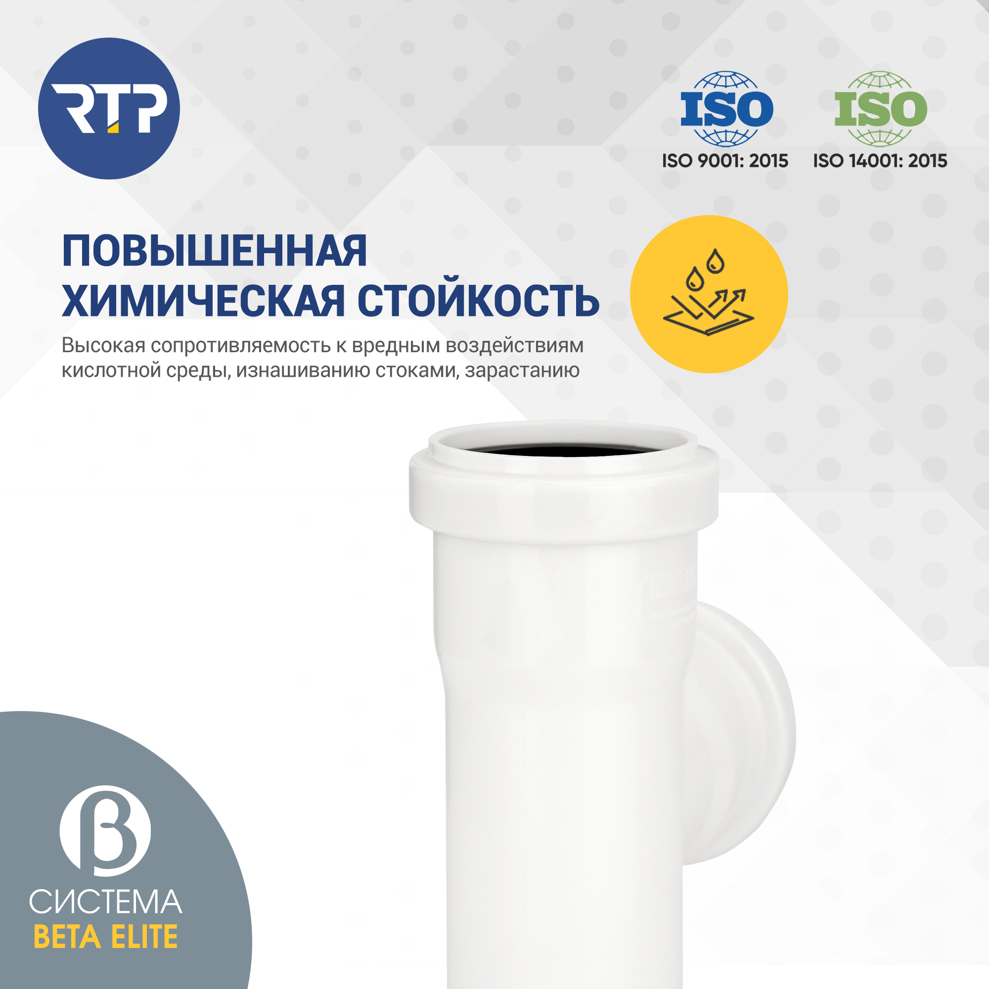 Тройник для внутренней малошумной канализации, полипропилен, PP-R, ППР, 50 / 50 х 87°, белый, RTP интересное: