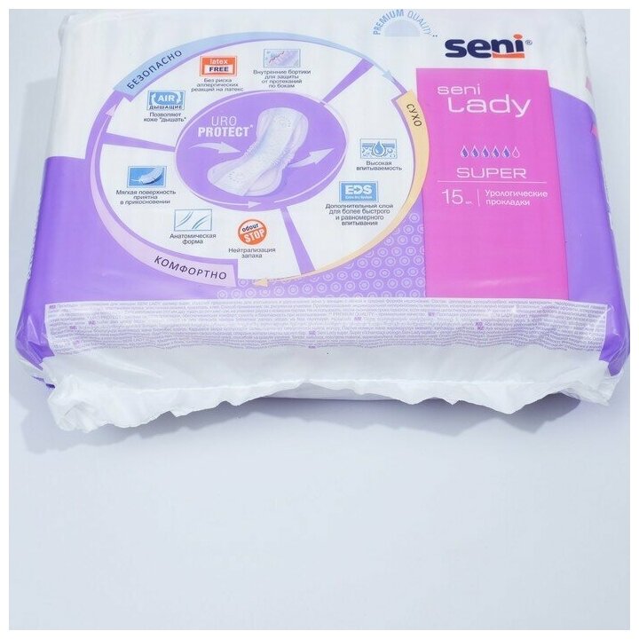 | Комплектация | Прокладки урологические женские 5 капель 15шт/уп SENI LADY Super - 1 упаковка |