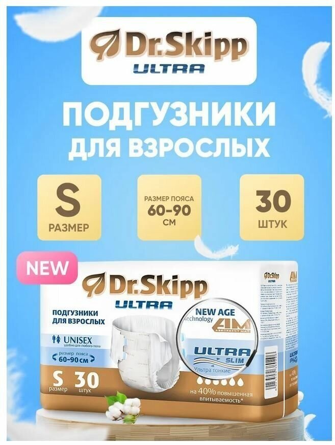 Купить Подгузники для взрослых Dr.Skipp Ultra, S (60-90 см), 30 шт
