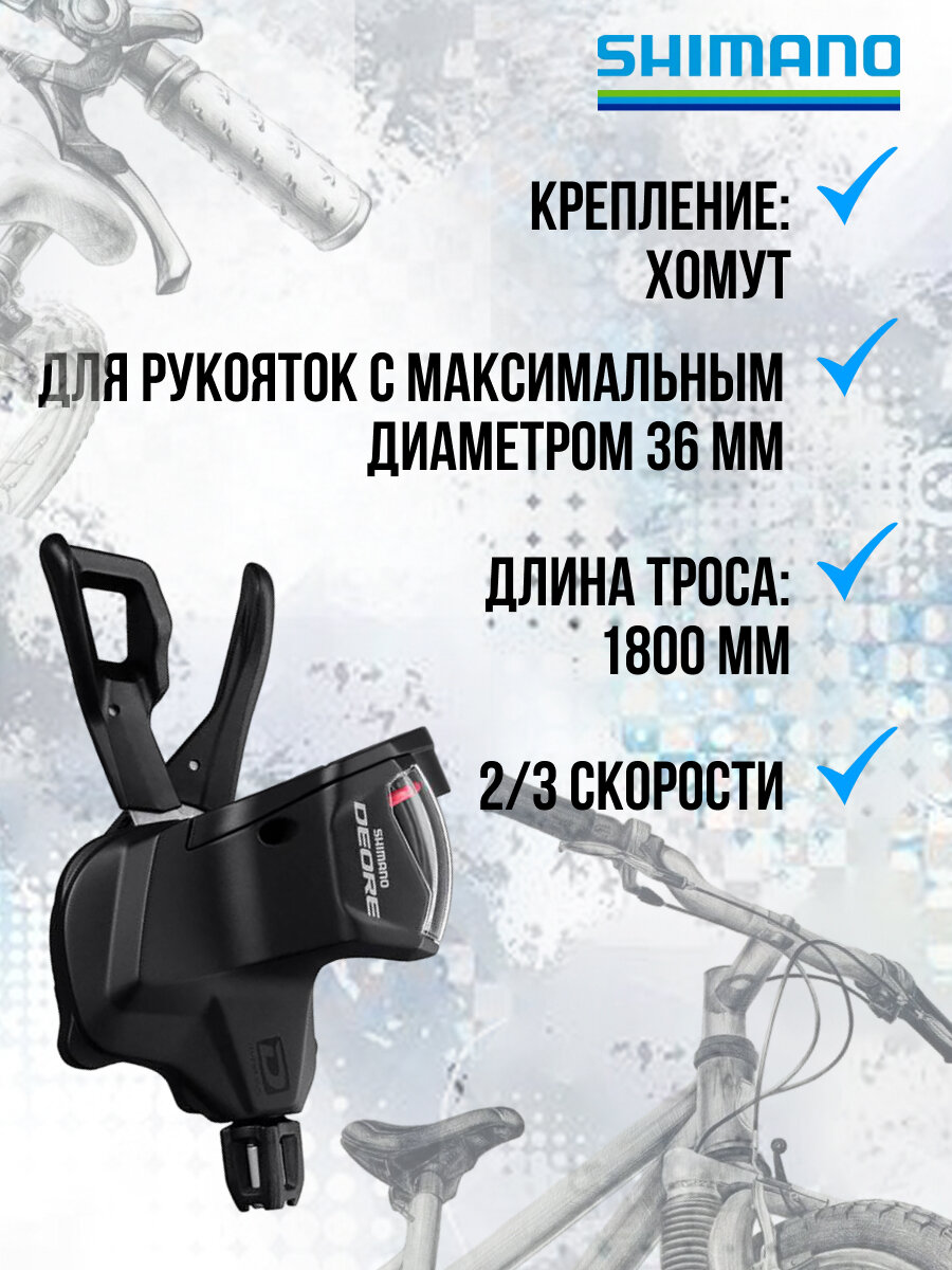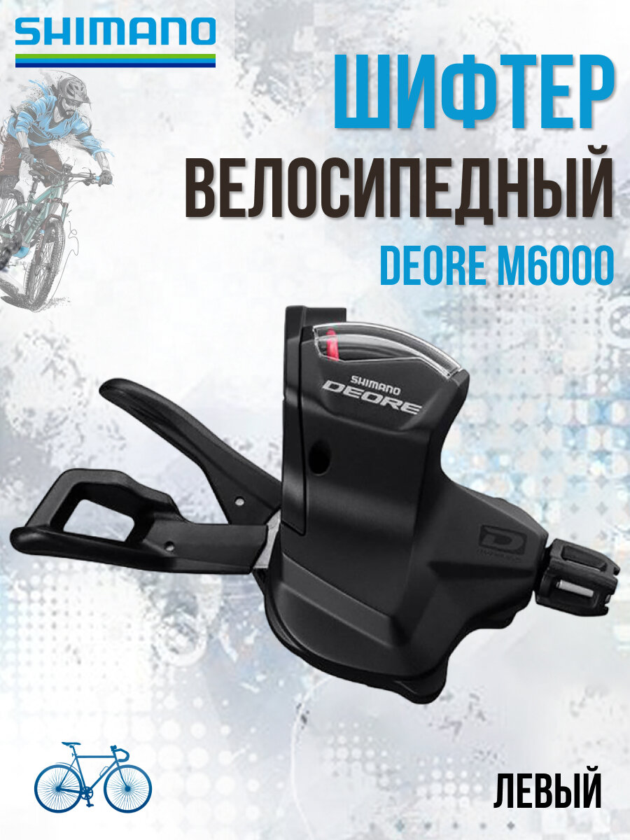 Манетка Shimano Deore SL-M6000-L, левая, 2/3 скорости, крепление на хомут, трос 1800 мм, ISLM6000LB