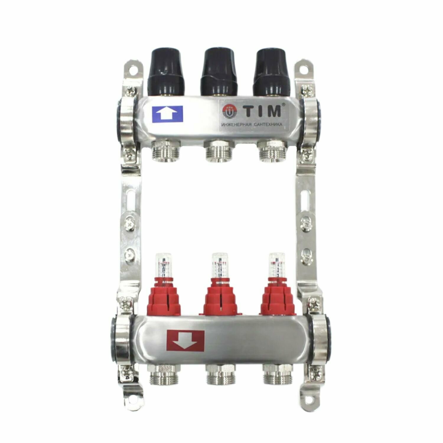 TIM Коллектор с расходомерами KDS5003 1" х 3 выходов из нерж. стали(без кранов возд. слив)
