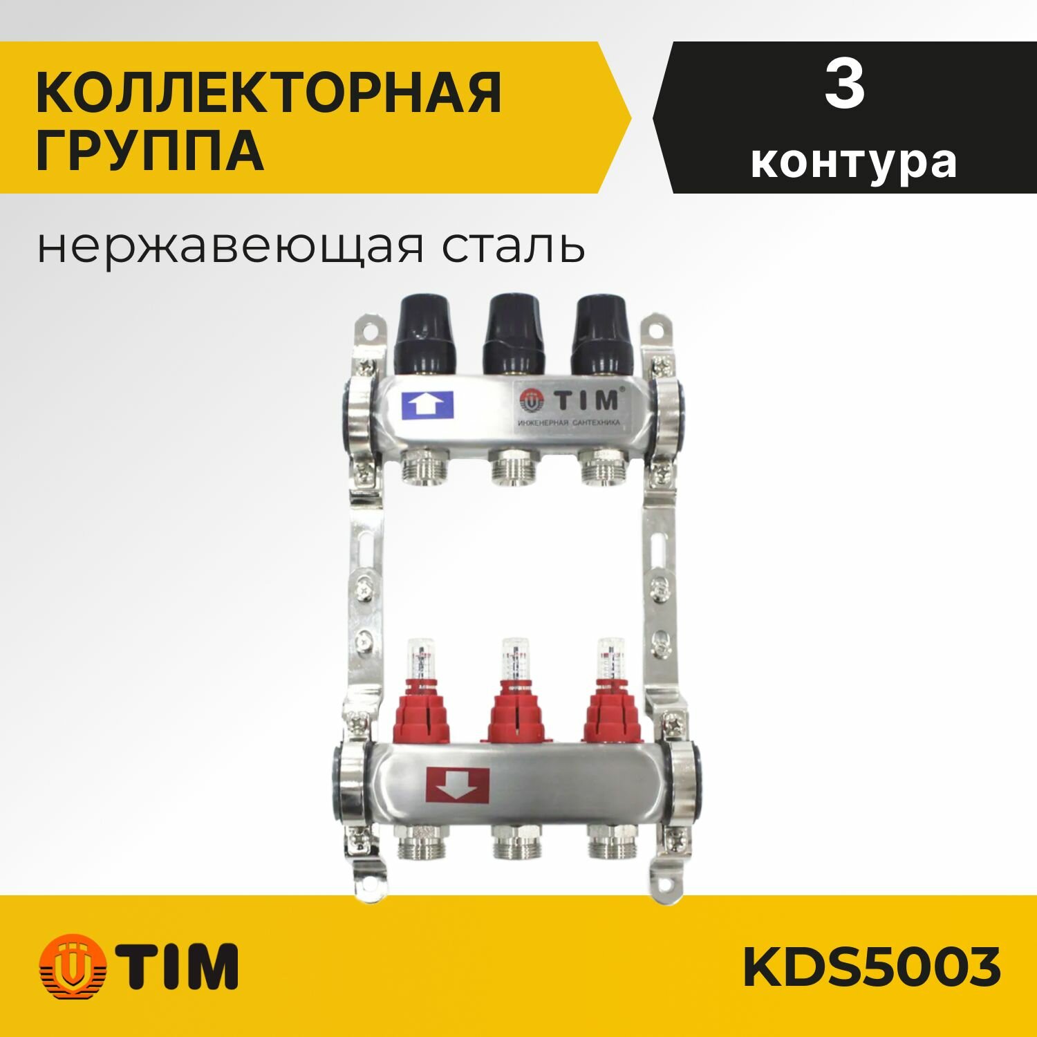 TiM Коллекторная группа 1" для т.пола, 3 контура, мин. комплект KDS5003