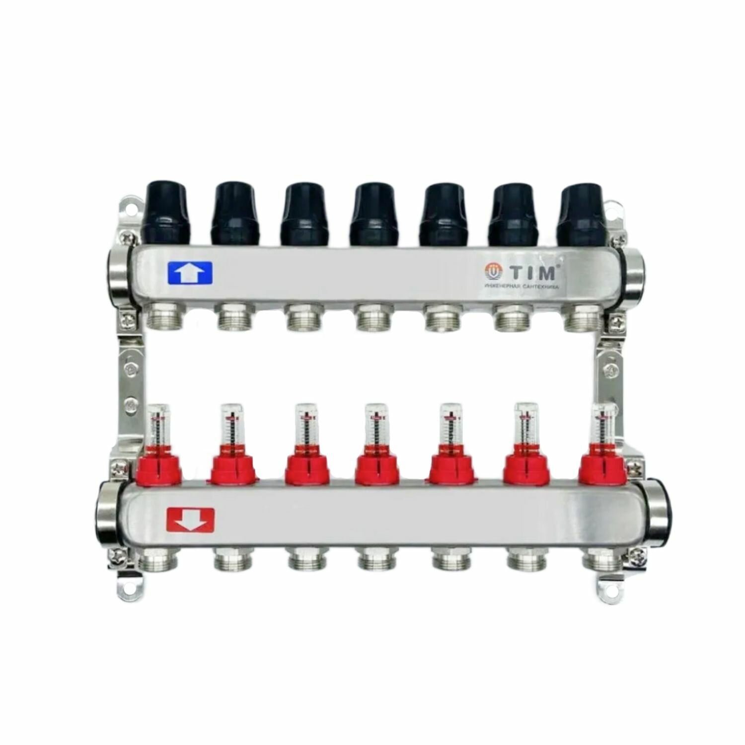 Коллектор с расходомерами из нержавеющей стали для теплого пола 1", 7 выходов 3/4 TIM KDS5007