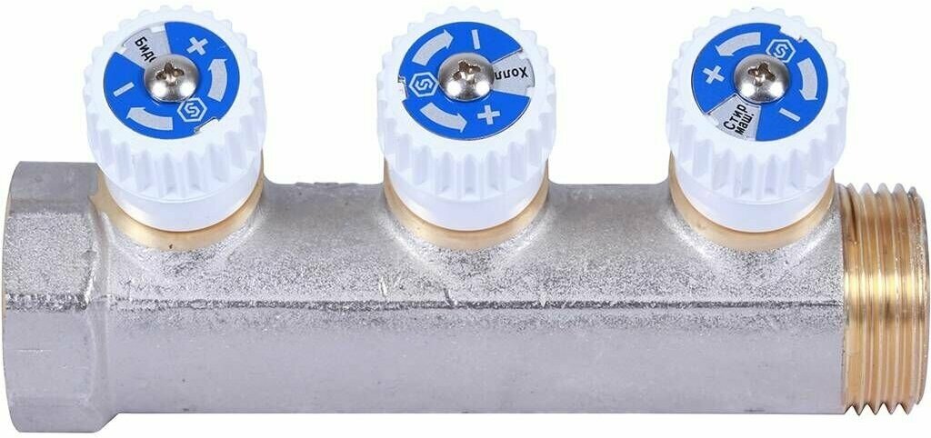 Коллектор Stout 3/4 ВР(г) х 3 выхода 1/2 НР(ш) х 3/4 НР(ш) регулирующий (SMB-6850-341203)