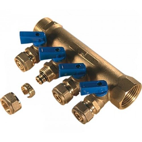 | Подробная комплектация | Коллектор с шаровыми кранами, упаковка.В комплекте имеются красные и синие ручки. |