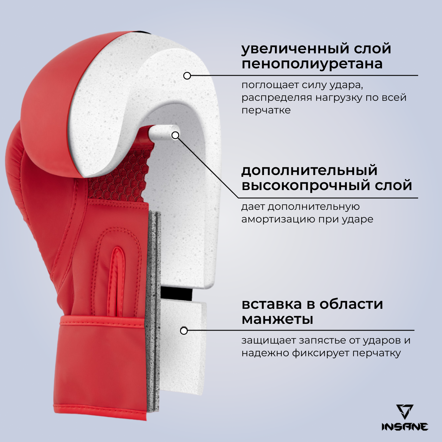 Перчатки боксерские Insane Oro, пу, красный, 12 Oz