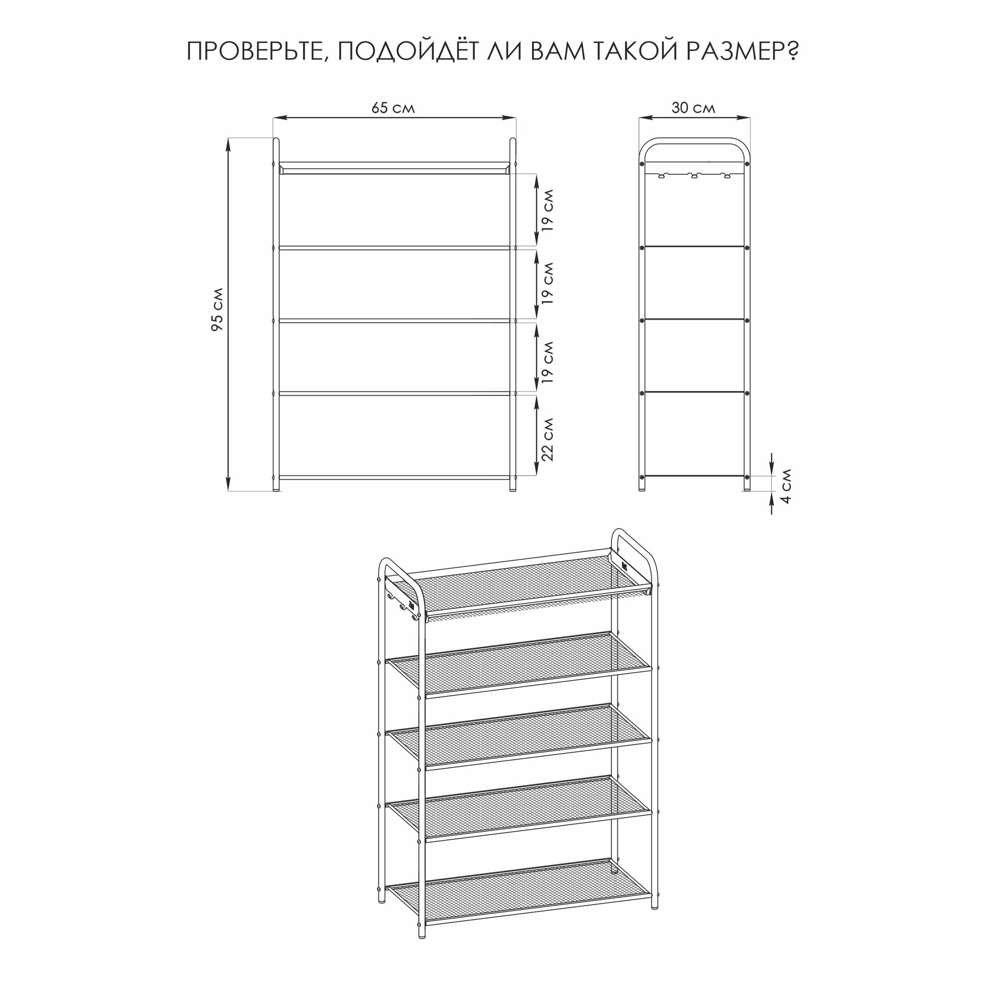 | Комплектация | Полка для обуви "Женева-23", 645х270х600 мм, 3 полки, металл, чёрная, ПДО Ж23 Ч |