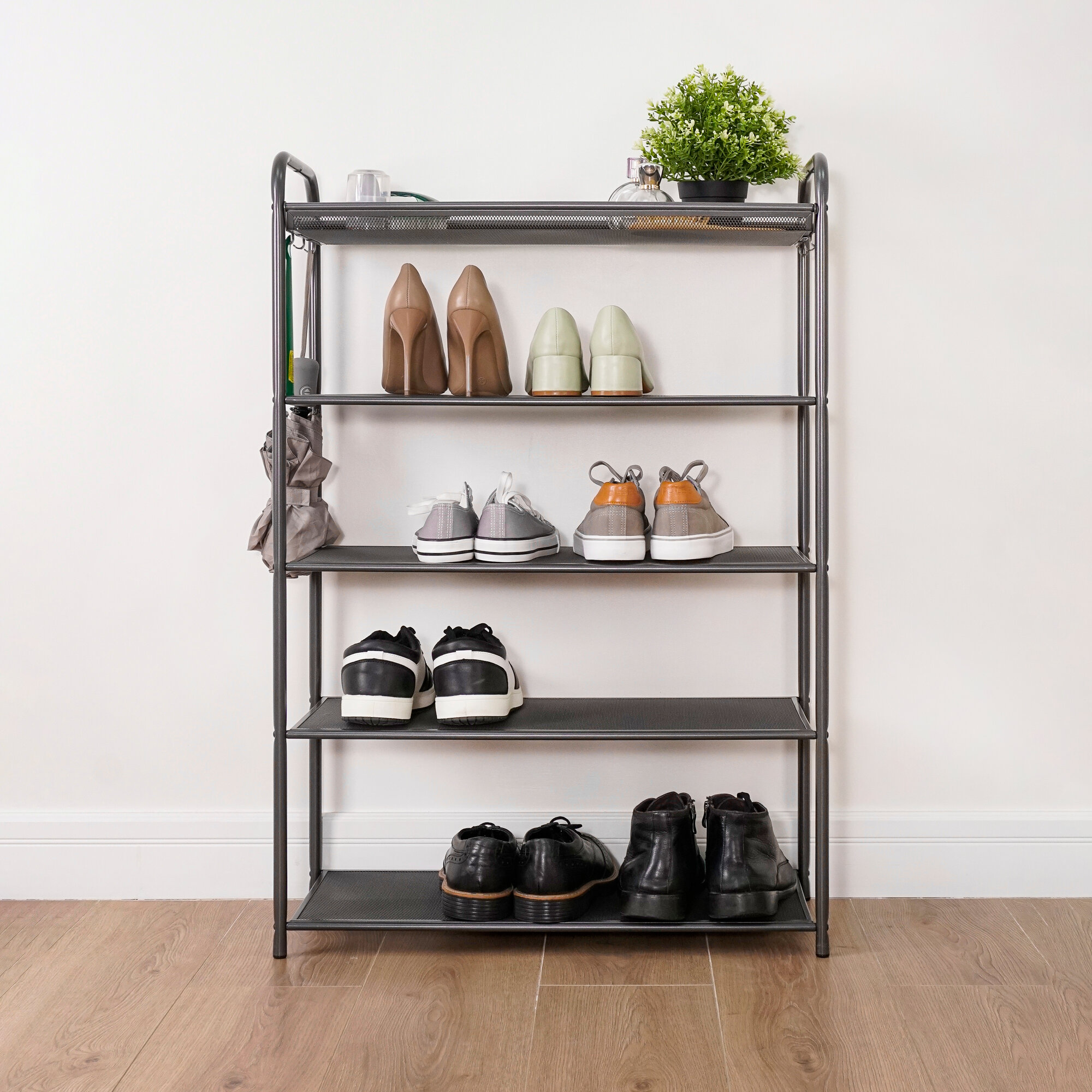 | Дополнительная информация | Наклонная полка; бортики на полках защитят стену; через мелкую сетку не провалится каблук |