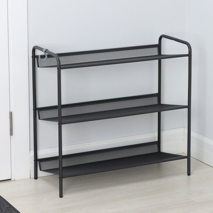 Обувница ЗМИ Верона 23, этажерка в прихожую на 9 пар обуви, 3 металлические полки, черная