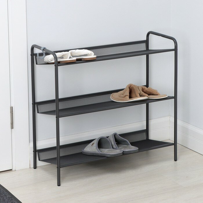 Купить Обувница ЗМИ, Этажерка для обуви 3-х полочная "Женева 23", 9 пар обуви, 64,5х27х60 см, цвет графит