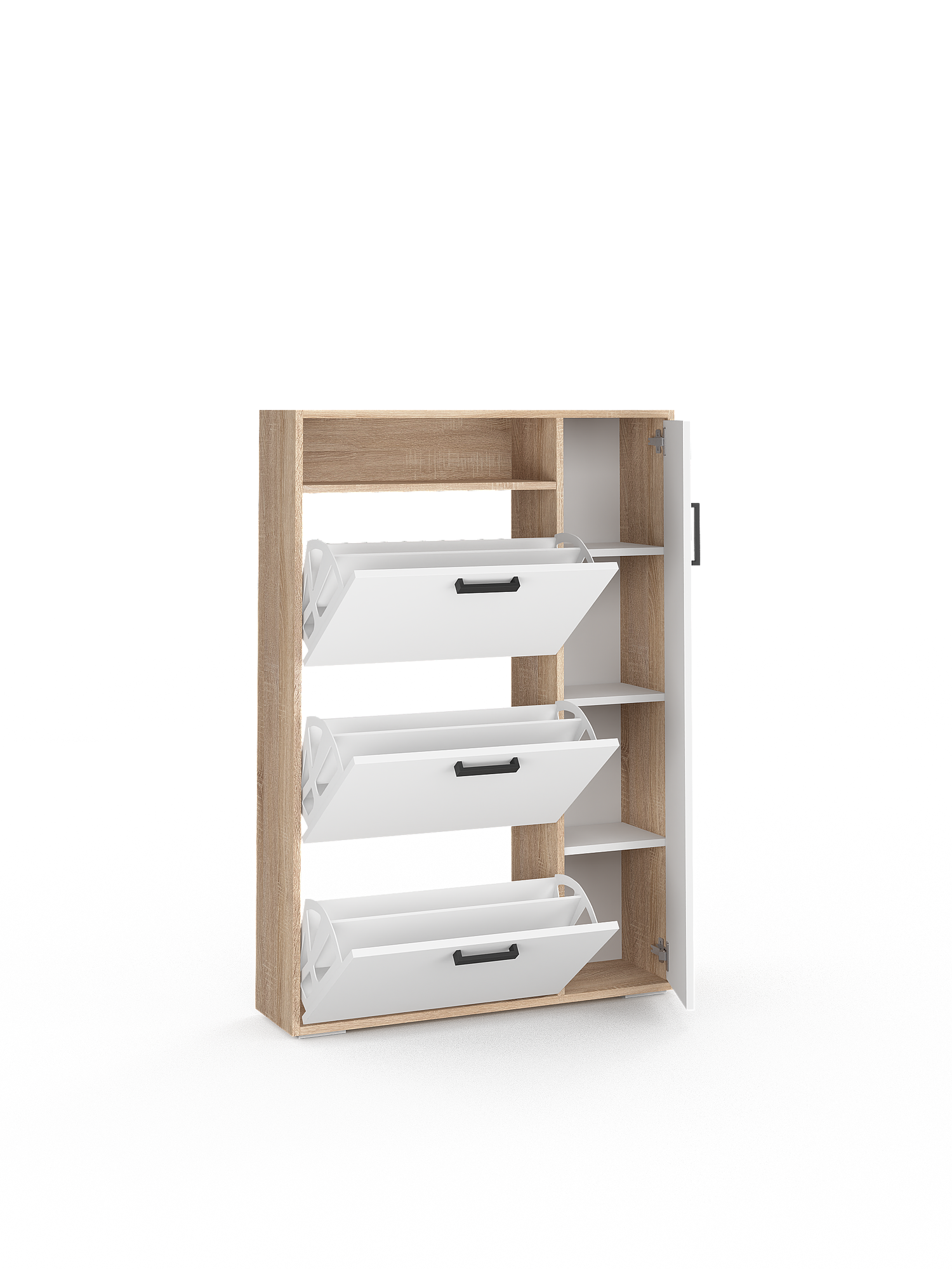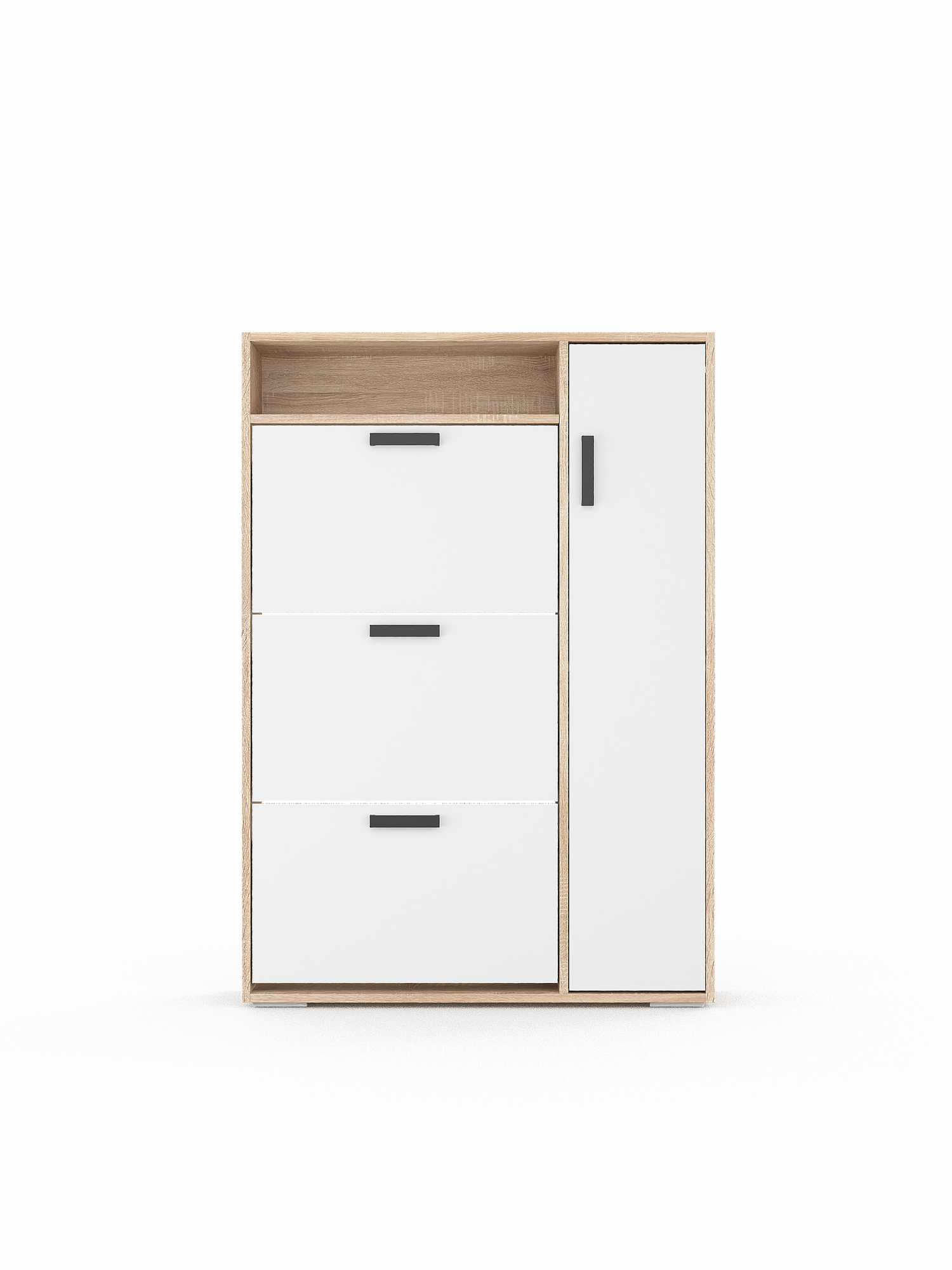 Купить Обувница "Скандия 2" закрытая напольная 87х22х124 см дуб сонома/белый