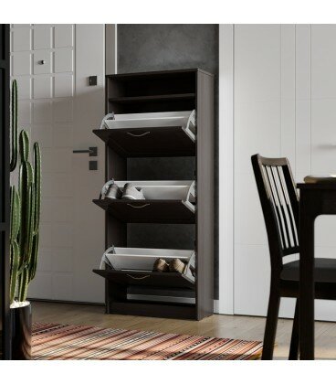Обувница ГУД ЛАКК Сириус, 60х25х142 см, 3 откидных ящика, дуб венге, черно-коричневая