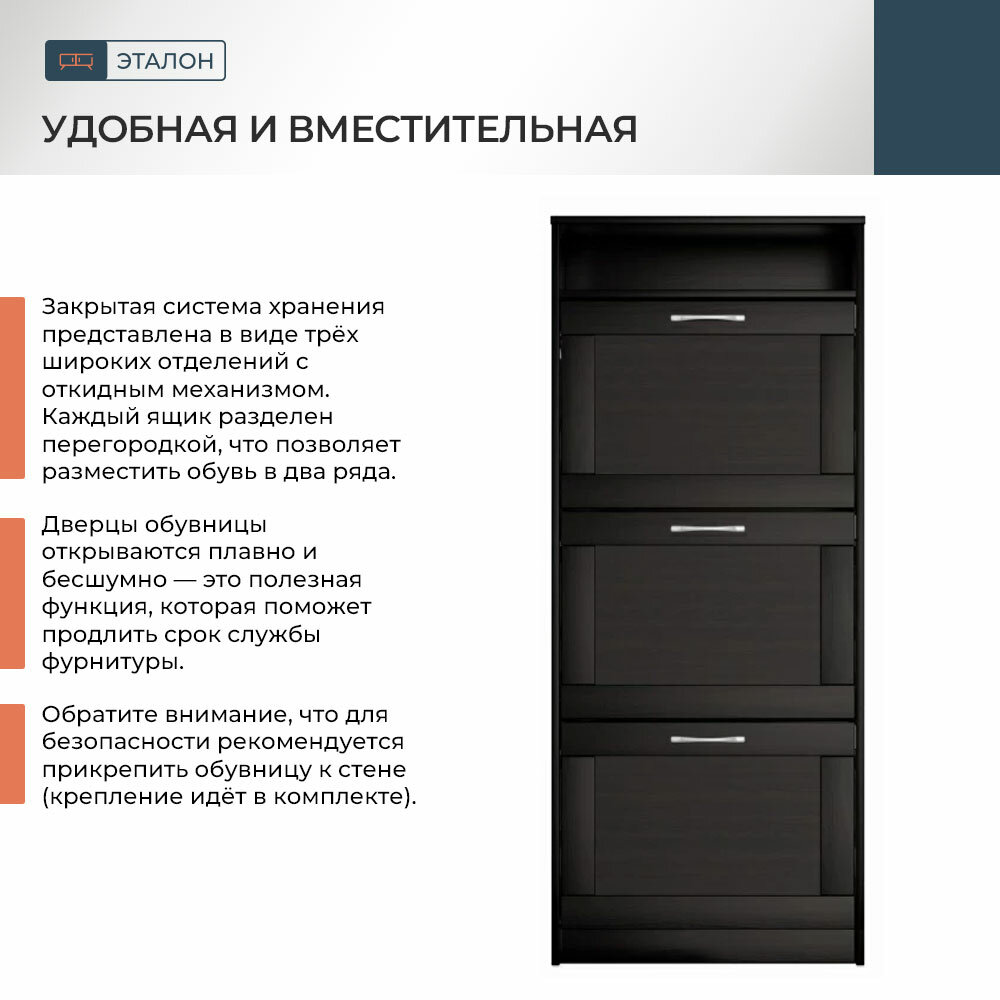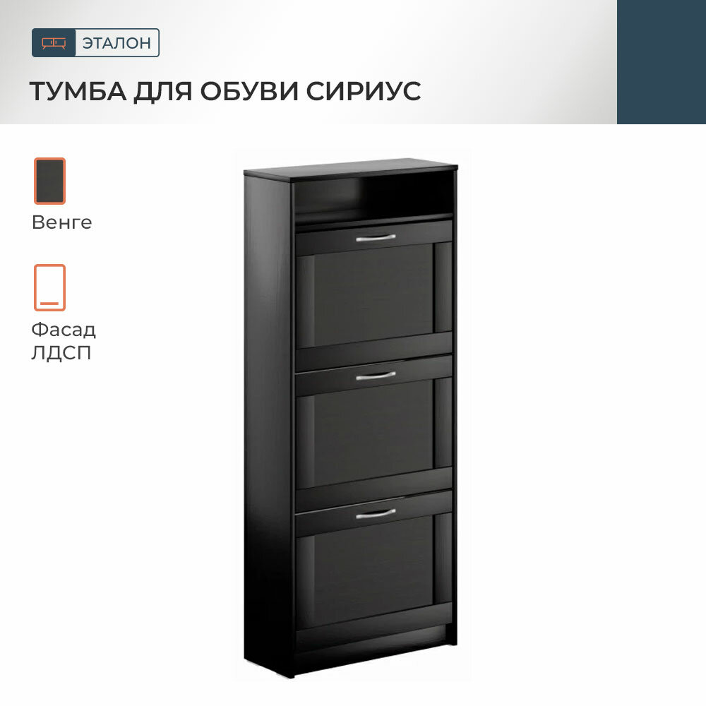 Обувница ГУД ЛАКК Сириус, 60х25х142 см, 3 откидных ящика, дуб венге, черно-коричневая