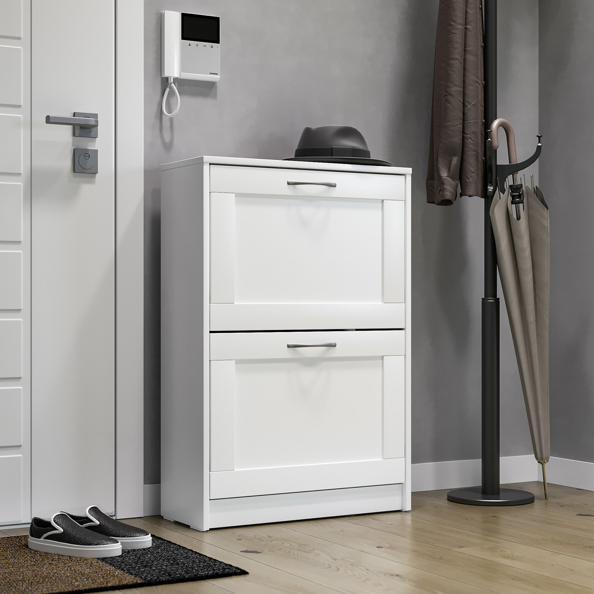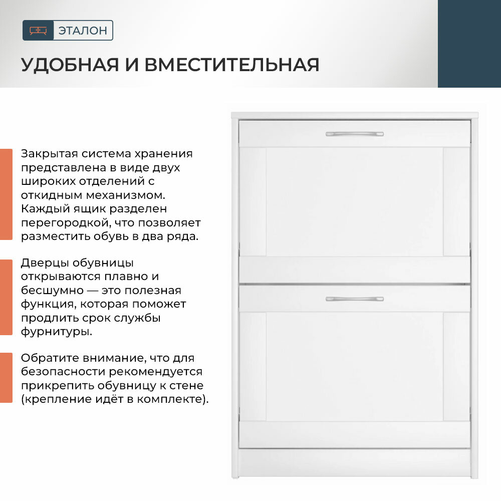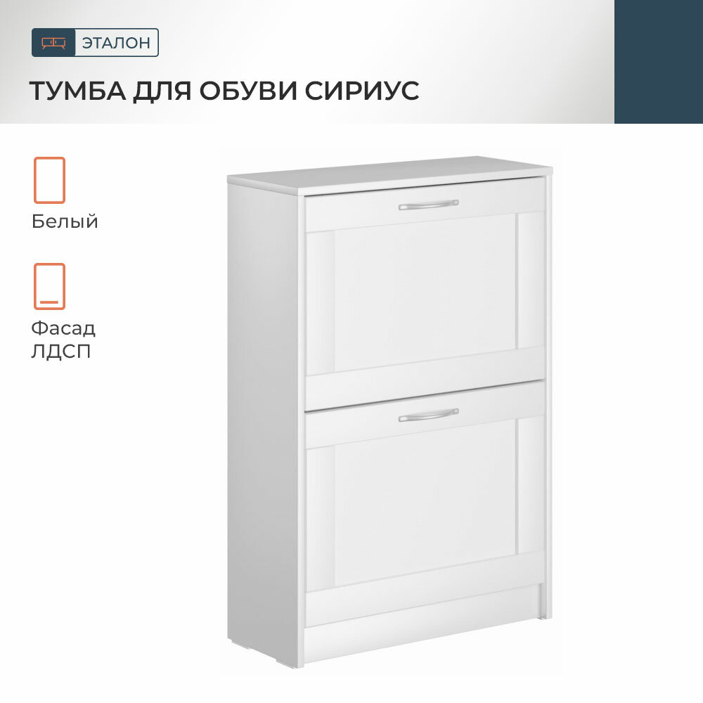 Обувница ГУД ЛАКК Сириус, 60х25х89 см, 2 откидных ящика, ЛДСП, белая