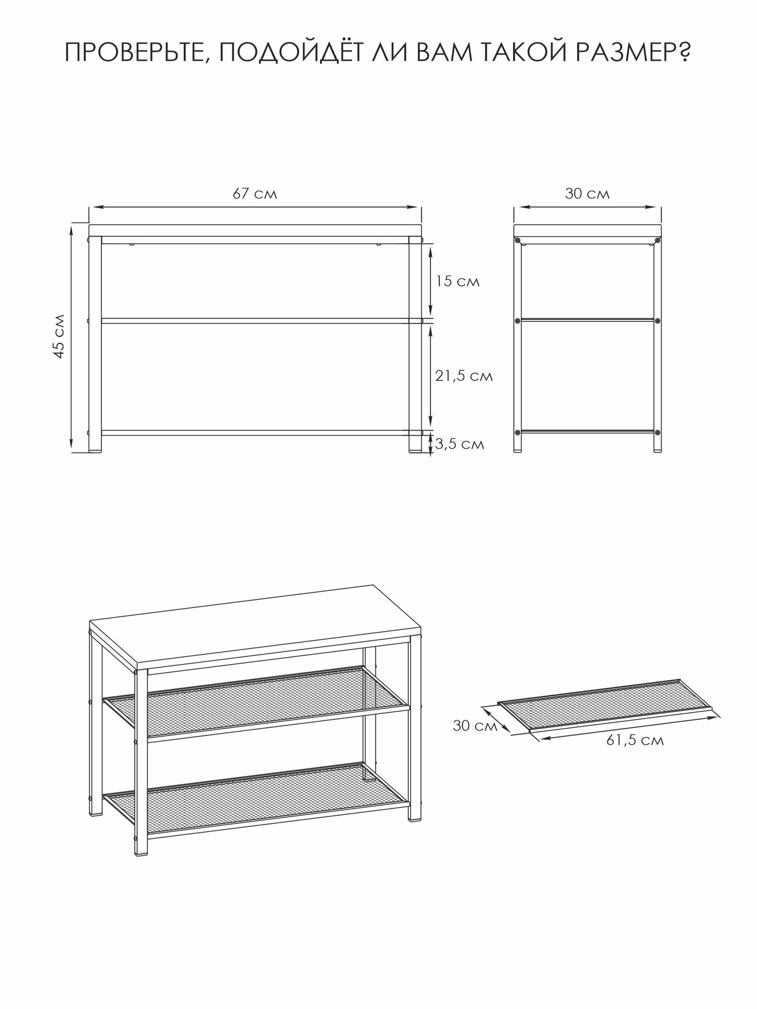 Не определен Этажерка для обуви с сиденьем (ЭТП3/С), 2 полки, 79×33×52,2 см, цвет серый