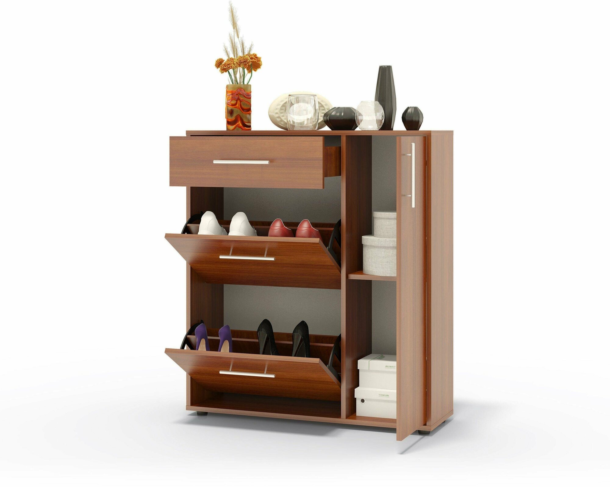 | Комплектация | 1 полка, 1 ящик, 2 полки для обуви, 3 дверцы |