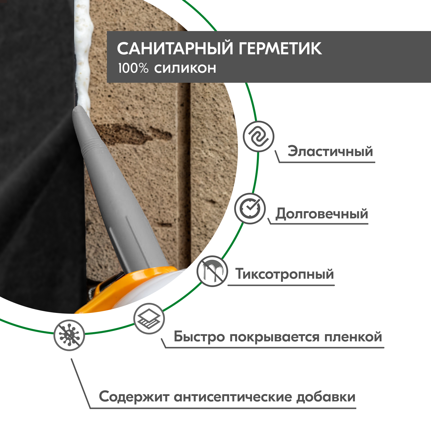 Герметик силиконовый DONEWELL санитарный DSK-121, для ванной и кухни, с добавкой против плесени, белый, 260 мл