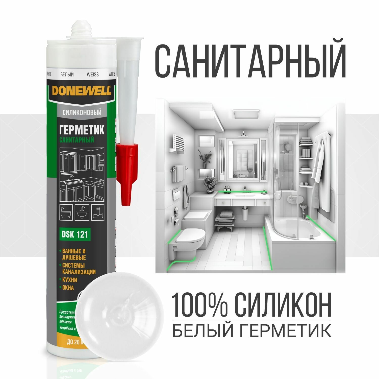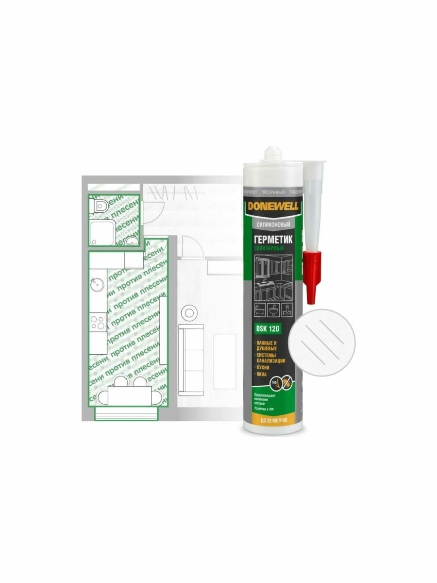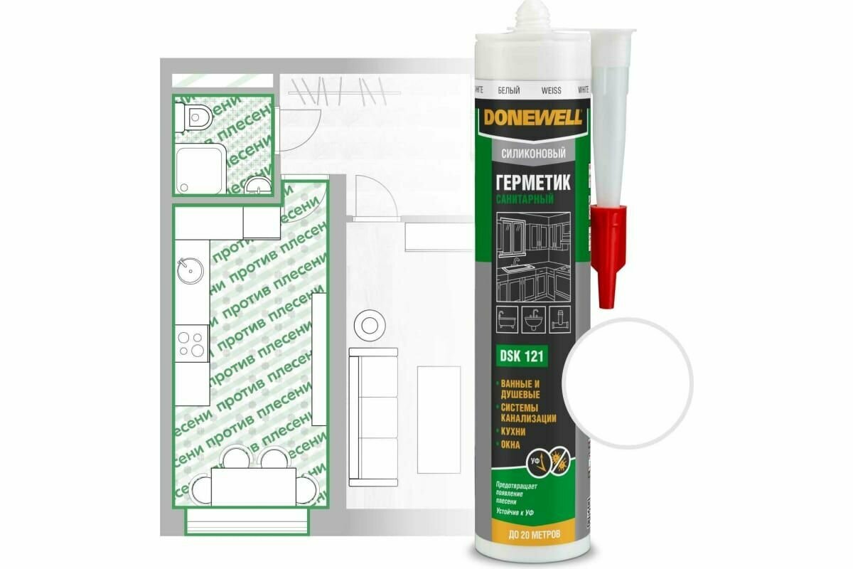 Купить Герметик силиконовый DONEWELL санитарный DSK-121, для ванной и кухни, с добавкой против плесени, белый, 260 мл